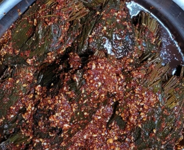 달인 부부가 직접 키워 따낸 깻잎을 소금에 절여두었다가 장작을때서 끓여 짠내와 군내를 싹 빼주고 잡어젓갈 액젓과 다시마 간장 고춧가루 등 비법 양념에 묻혀 숙성시켜 만든 깻잎 김치는 향과 식감 매콤한 감칠맛까지 그동안 먹어본 깻잎 김치와 차원이 다른 깻잎 김치라고 합니다. 깻잎 김치는 물론이고 달인이 김장김치 깻잎김치 각종 양념용으로 사용했던 잡어 젓갈까지 구매를 원하는 분들이 굉장히 많아 판매를 시작하셨다고하는데 깻잎은 1키로단위 잡어젓갈은 1.8리터로 구입이 가능하다고 합니다. 달인 부부가 직접 키워 따낸 깻잎을 소금에 절여두었다가 장작을때서 끓여 짠내와 군내를 싹 빼주고 잡어젓갈 액젓과 다시마 간장 고춧가루 등 비법 양념에 묻혀 숙성시켜 만든 깻잎 김치는 향과 식감 매콤한 감칠맛까지 그동안 먹어본 깻잎 김치와 차원이 다른 깻잎 김치라고 합니다.