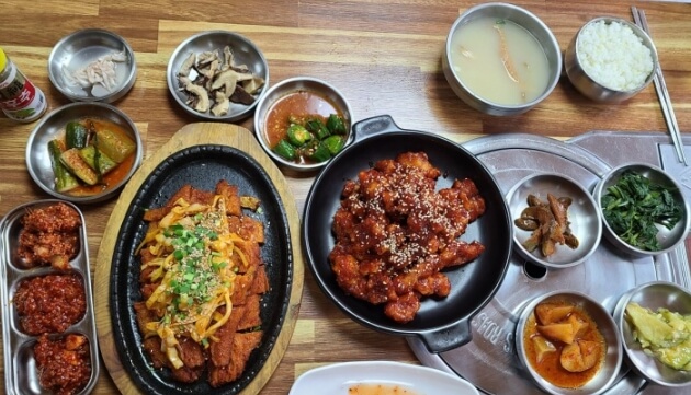 이곳 인제 황태요리 식당 덕장에서 평균 영하 10도에서 자연건조만으로 생산한 최상급 황태는 노르끼리 한 색이 껍질과 속살에 들고 눌러보면 탄력이 있는 부드러운 스펀지처럼 부드럽다고 하는데요. 기름에 맛있게 튀기고 이곳만의 특제 소스로 잘 버무려 감칠맛나는 매콤 달콤함과 고소한 맛의 황태강정과 부드럽고 촉촉하며 비린내가 전혀 없으며 고소하고 부드러운 식감과 특유의 담백하고 깊은 풍미의 황태구이로 유명합니다.
