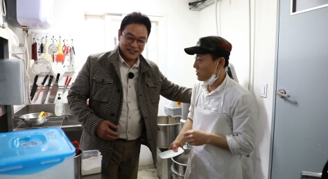 한 사람을 위해 빵을 만드는 성수동의 빵쟁이 붉은 벽돌로 지어진 집들이 가득한 골목으로 발걸음을 옮기는 김영철. 멀리서부터 퍼져온 고소한 빵 냄새에 이끌려 들어간 곳은 성수동에 새롭게 터를 잡은 김동일씨가 운영하는 작은 빵집. 진열되어 있는 빵들 중에 김영철의 눈길을 사로잡은 빵은 당뇨병을 앓고 있는 단골을 위해 직접 주인이 만든 빵. 당뇨병이 있는 사람도 안심하고 먹을 수 있는 빵을 만들기 위해 사장님은 직접 재배한 천연발효종만을 넣어 빵을 만든다고. 반죽을 숙성시키고, 빵을 만들기까지는 하루가 온전하게 소요된다는데 사장님이 만든 빵을 맛보며 김영철은 빵집의 인기비결은 다름 아닌 사장님의 열정임을 느낀다.