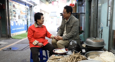 길을 걷다 만나게 된 ‘뚝도시장’. 성수동에서 가장 오래된 시장으로 과거 서울의 3대 시장으로 손꼽히던 영광을 누렸다. 시장을 거닐다 열심히 더덕을 까는 가방가게 할머니를 발견한 김영철.