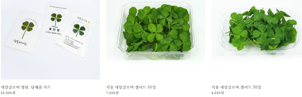 서민갑부에 나온 네잎클로버는 식약처에도 식용 가능한 식물로 등록을 마친바 있다고 하는데 화분으로 장식하는것 뿐 아니라 음식 및 식품의 데코는 물론 식용으로 섭취하면 단백질과 필수 미네랄이 다량 함유돼 있어 녹즙과 샐러드, 분말로도 먹을수 있다고 해서 큰 인기인데요. 하단의 홈페이지를 통해서 구매하실 수 있습니다.