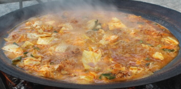 처음부터 끝까지 참나무장작과 숯불로 끓여내는 깔끔하고 깊은 국물맛의 솥뚜껑닭볶음탕의 맛을 느낄 수 있습니다.