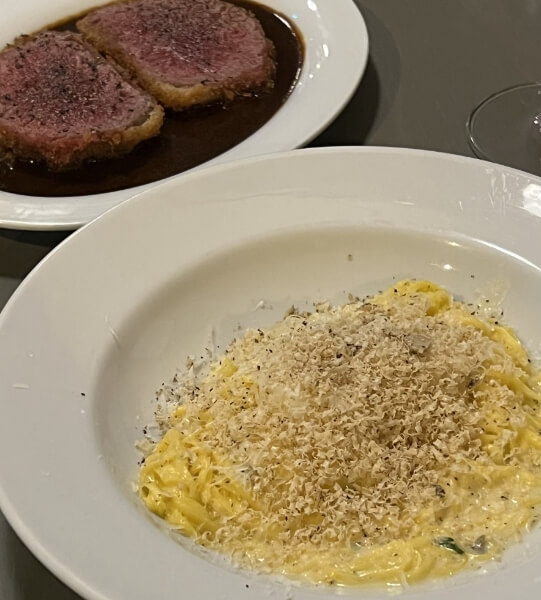 달인의 벨퍼캐놀레 파스타는 얇은 생면과 꾸덕꾸덕한 소스, 그리고 벨퍼캐놀레 치즈의 삼중주가 오감을 만족시키기로 한국 어디에서도 보기 힘든 특별한 파스타라고 합니다 상큼하고 달콤한 간장 특제 소스 위에 호주산 안심과 이곳만의 빵가루를 입혀 바삭하게 튀겨낸 카츠를 올린 메뉴로 겉은 바삭하고 속은 레어로 부드러운 식감이 일품