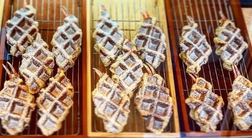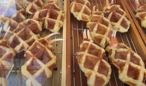 원래 대게 도매업을 하셨다는 사장님은 이 대게빵을 직접 개발했다고 하는데요. 이곳 대게빵집은 프랑스산 생지만 사용하며 크로플 생지도 전부 테스트 해보고 가장 맛있고 집게발이랑 가장 잘 어울리는 생지를 사용해 만들기때문에 반죽의 바삭함과 쫀득한 맛을 자랑한다고 하는데요.집게발도 통통한 것만을 사용하고 크로플 생지 사이에 집게발을 넣어 와플기에 구워내며 천연 슈가파우더를 뿌려 완성해 낸다고하는데요