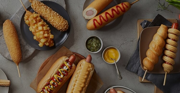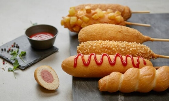 핫도그 하나를 만들기 위해서 사람 손이 안 거치는 공정이 없다고 하는데 핫도그의 상품성을 좌우하는 최상의 반죽을 만들고 발효해서 사용하기 때문에 푹신푹신하고 질감도 쫀득하다고 합니다. 고구마나 치즈를 넣은 핫도그부터 트위스트핫도그, 감자가 콕콕 박혀 도깨비 핫도그라는 감자 핫도그까지 그 종류만 해도 10가지가 넘는다고 합니다.
