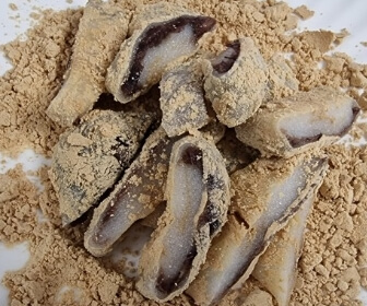 강아지떡은 두 귀를 길게 늘어뜨린 모습이 강아지를 닮았는데 황해도에서 만들어 먹던 전통떡으로 일제 강점기 일본군이 우리 쌀을 수탈하기 위해 떡과 술을 만들지 못하게 하여, 연백평야의 이북 주민들은 굶주린 어린 자식에게 떡이라도 몰래 먹일 요량으로 인절미를 갓난 강아지라고 속이고 자식들에게 먹였다는 가슴 아픈 유래가 있는 떡이라고 합니다.