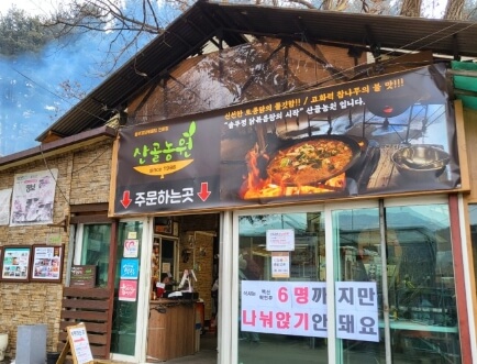 상호 : 산골농원 솥뚜껑전골(닭볶음탕)의 원조