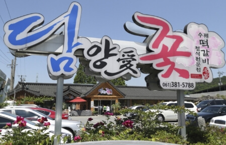 담양애꽃 예쁜 정원과 연못이 있어 운치있는 외부공간과 실내의 모든 공간을 한옥과 잘 어울리게 꾸민 인테리어에 퓨전한정식 퓨전한식 저렴하고 정갈한 재료본연의 맛을 살린 건강한 재료와 푸짐한 양으로 가성비까지 좋은 식당으로 소고기 돼지고기 김치 등 모든 재료는 국내산 좋은 재료만을 엄선하여 만드는데 한우협회에서 인증받은 우리한우 인증점의 한우 떡갈비와 한돈돼지고기로 잡내없는 특유의 고소하고 부드러운 고기맛을 살린 돼지떡갈비로 담양 인기맛집