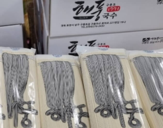이 공장의 해풍국수는 품질좋은 1등급 밀가루와 소금외에 다른 첨가물은 전혀 넣지 않으며 구룡포 바닷바람으로 전통자연건조방식을 이용하여 말리기때문에 비교할 수 없을 정도로 면발이 쫄깃하고 탱글해 많은 분들이 찾는 유명한 국수라고 하는데 하단의 홈페이지를 통해 구매 가능합니다.