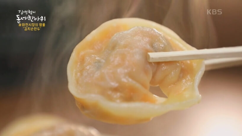 동네 한 바퀴 153회에서는 강원도 화천에서 가족이 하나가 되어 작지만 화천시장의 명물 김치 손만두로 겨울 석달동안 6천 포기의 배추로 김치를 담궈 만두를 빚을 만큼 지역에서는 물론 유명한 김치손만두가게를 찾았다고 합니다.