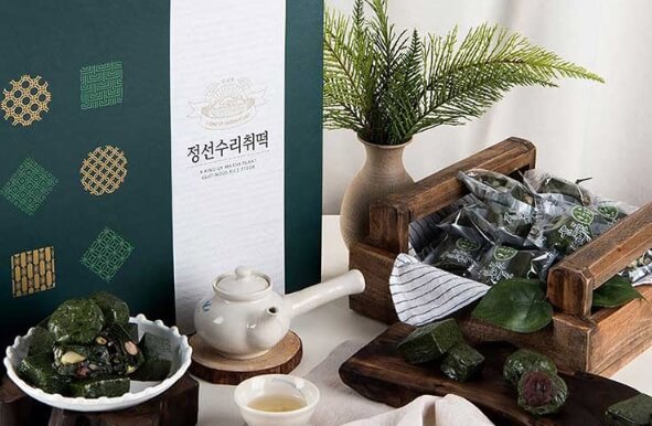 정선 아리랑시장 수리취 찹쌀떡은 쫀득한 수리취 인절미의 식감과 쌉사름한 향이 그대로 살아 있으면서 팥앙금의 달콤하고 부드러움을 더해져 식사대용 영양간식으로 인기이며 완도 해남 명품 김에 정선의 명이나물(산마늘)의 조합으로 만든 바삭하고 고소한 명이 김도 인기라고 하는데 6시 내고향 힘내라 전통시장에서 방송된 정선 아리랑시장 수리취떡 명이 김은 하단의 홈페이지를 통해 구매 가능합니다.
