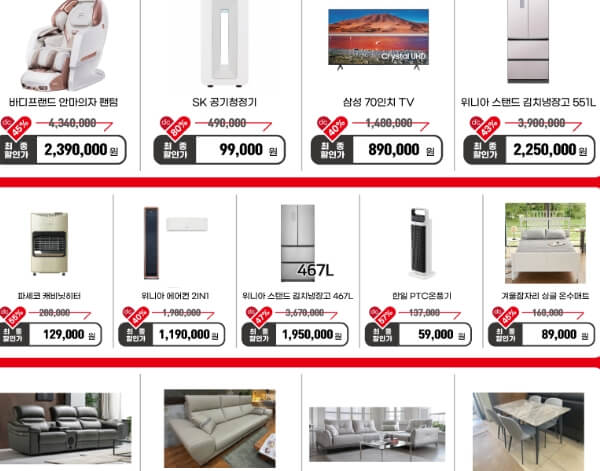 필수가전이라 불리는 세탁기, 냉장고, TV는 물론 안마의자와 에어컨, 식기세척기 등 대형가전의 종류만 무려 300가지가 넘고 식탁 침대 아이들 가구를 비롯해 각종 주방용품 생활용품 스포츠용품 등 까지 이 모든 제품이 적게는 20%, 많게는 70%까지 할인 판매되고 있으며 온라인을 통해서도 많은 분들이 찾는다고하는데 서민갑부 리퍼브 제품 매장 서동원 갑부 온라인 택배 주문은 하단의 홈페이지를 통해 가능합니다.