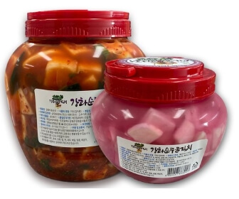 강화도는 일교차가 크고 소금기를 품은 해풍이불어와 이러한 환경에서 살아남기 위해 양분을 더 축적하게 되는데 이 양분들이 당분으로 바뀌어 육지보다 해안가에서 거칠게 자란 작물이 더 맛있게 느껴지는데 강화도는 대부분 뻘로 형성되어 있었던 곳으로 유효 미생물의 함량이 높으며 무색소 무화학조미료 감미료 무방부제 김치로 천연조미료와 새우로 구수한 맛을 내며 100% 우리 농산물만을 사용 7일~15일 정도 숙성시키면 톡쏘는 탄산감과 순무김치 본연의 깊은맛을 더 느낄 수 있다고 합니다.