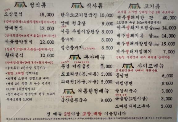 삼대정식 13,000원 (정식류는 2인 이상 주문 가능)