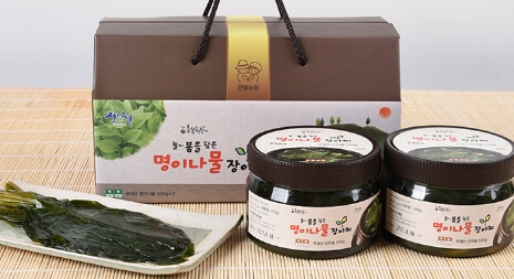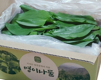 명이나물은 수년의 시간동안 정성으로 재배되고,1년 딱 한철에만 만나볼 수 있는 귀한 산나물로 특유의 마늘향과 알싸함이 뛰어나며 높은 일교차를 이겨내고 이른 봄 언땅을 뚫고 싹을 ;틔우는 생명력이 강한 나물로 자양강장제 중 최고로 치며 해독 동맥경화 당뇨에도 좋다고 합니다.