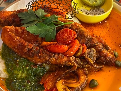 스페인에서는 삶은 문어를 찐 감자와 곁들이고 파프리카 파우더와 올리브유를 뿌려서 먹는 방식이 아주 일반적으로 사장님의 문어요리는 스페인식 문어요리로 유명한 pulpo a la gallega를 뽀르께노식으로 재해석한 요리라고 하는데요. 좀 더 부드러운 식감을 살리기 위해 직접 만든 매쉬드 포테이토를 활용하고, 파프리카 파우더를 베이스로 한 매콤한 브라바 소스와 향긋한 바질 페스토를 감자 위에 토핑한 뒤, 큼직한 문어 다리 2개를 올리브유에 맛나게 볶아낸 요리라고 합니다. 이곳의 또하나의 인기 메뉴는 대구 스테이크인데요. 부드럽고 풍미 넘치는 대구살을 만들기 위해 오렌지와 사과를 썰어 꿀과 함께 끓여준 후 나온 엑기스에 대구살을 하루 동안 숙성시켜 주는 과정을 거치기 때문에 일반적인 대구와는 다른 향과 부드러운 맛을 느낄 수 있다고 합니다.