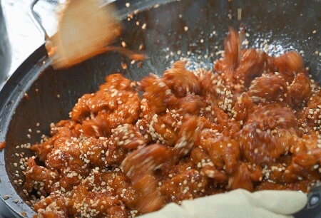 40년전통 닭강정 가게로 바삭하게 튀긴 닭강정과 고소한 견과류의 환상적인 조화로 바삭하고 달달 매콤한 중독성 있는 맛으로 인기라고 합니다. 또한 메밀전병은 얇고 담백한 메밀전에 매콤한 김치와 국산 돼지고기의 담백한 육즙의 조화로운 맛으로 인기라고하는데요.