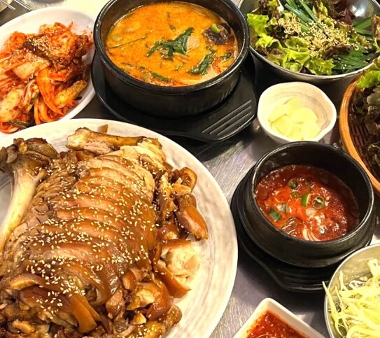 달달하고 맛있게 매운 맛이 너무 맛있었고 아이들도 좋아하는 간장족발로 기본상차림에 순댓국도 나오고 반찬도 리필 가능하며 친절하다는 평이 많은곳인데 새콤달콤 배불러도 계속 먹게 되는 묵은지막국수도 인기라고합니다.