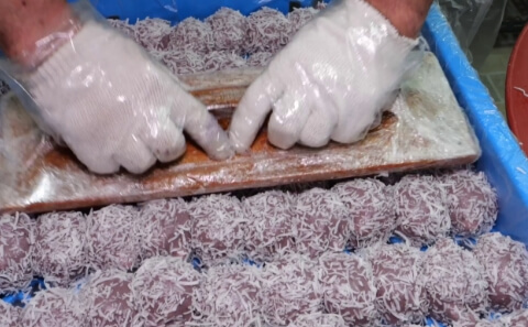 이번 6시 내고향 힘내라 전통시장에서는 충북 영동전통시장에서 특산물 포도를 사용해 굳지 않는 포도영양떡 포도주먹떡을 개발한 떡집이 소개되었습니다. 포도즙으로 반죽하고 꽉 찬 견과류 앙금에 겉에는 코코넛가루를 뿌려서 고소함이 가득한 상큼하고 쫀득한 맛이 일품인 영양떡으로 전국 택배 가능하다고 합니다.