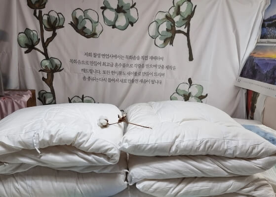 이곳 경남 함양 40년 목화솜 대가 임채장님의 면업사에서는 직접 재배하는 목화밭에서 나오는 최고급 목화솜으로 만들며 혼수부터, 천연염색이불, 신생아이불까지 다양한 목화솜 제품들을 제작 판매하고 있다고 하는데요.