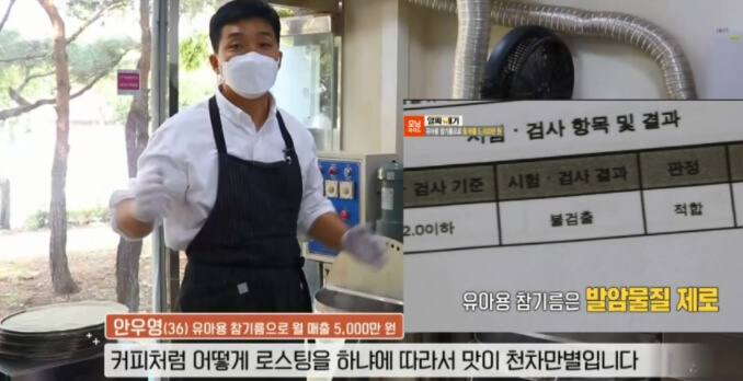 이곳은 요즘 감성의 인테리어로 고급스러움이 물씬 풍기는 카페 느낌의 신세대 방앗간으로 10년 전까지만 해도 해외 레스토랑에서 VVIP 전담 셰프로 근무했다는 안우영씨가 그 주인공이라고 하는데요. 40여년 곡물 방앗간을 운영한 부모님의 노하우와 아기아빠로서의 마음으로 유아전용 참기름을 만들면서 매출이 급상승했고 현재는 뉴욕 미슐랭 3스타 레스토랑에도 기름을 납품할 정도의 대박 참기름 방앗간이라고 합니다.