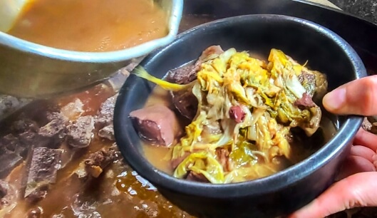 이곳의 해장국은 24시간 우려 낸 사골육수와 소목뼈를 고아 고깃물이 국물에 더해져 더욱 깊은 맛을 담고 있으며 탱탱한 선지의 맛과 배추의 달콤함과 시원함이 더해져 맵지않고 담백한 맛의 보양식 건강요리라고 합니다. 아래에서 주문하세요.
