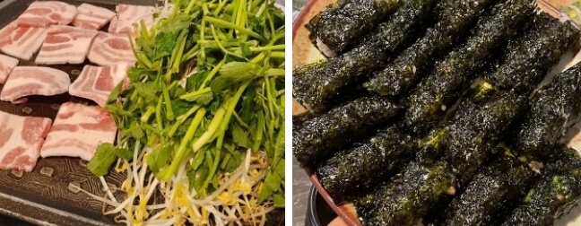 미나리급냉삼겹살 - 17.000원 소고기 김밥 - 5.000원