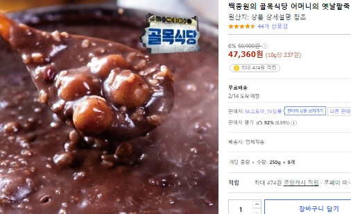 백종원의 골목식당 어머니의 옛날팥죽 8팩