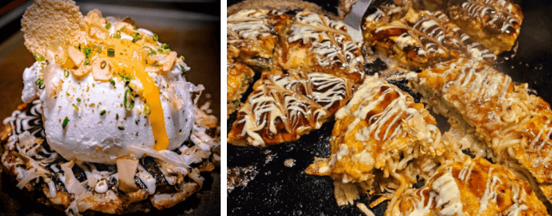 이곳의 오코노미야키는 바삭한 식감과 각종 채소가 잘 구워져 내는 단맛. 엄선된 8종류의 과일과 야채를 진득하게 숙성한 특제 소스의 조화로 잊지못할 맛을 전한다고합니다..