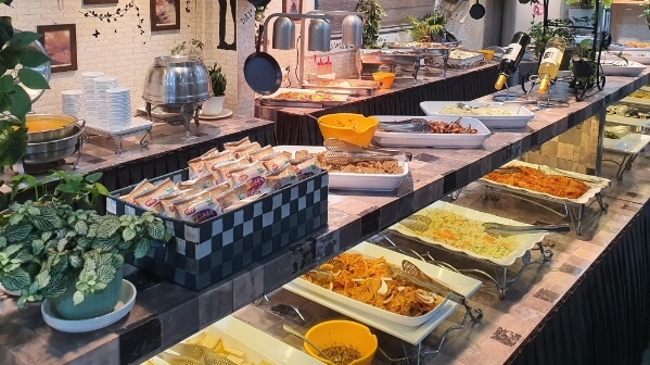 배추김치부터 열무김치, 깻잎김치 등등 각종 나물류와 김치가 가득하고 갈비나 불고기와 잡채 떡 등 한식류와 백짬뽕, 류산슬부터 마파두부, 짜장까지 중식도 즐길 수 있습니다.