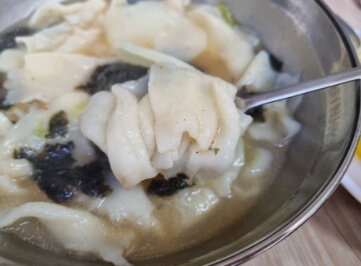 극히 심플한 비주얼의 수제비는 깔끔 담백한 국물 맛과 역시 밀가루 풋내가 전혀 나지않는 수제비의 맛에서 달인의 반죽 내공을 느낄 수 있는 분식집입니다.