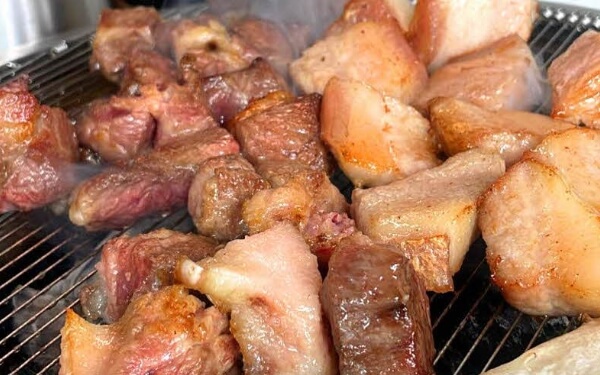 큼직하게 깍둑 썰린 항정살과 삼겹살은 식감은 물론 육즙까지 꽉차 있어서 소금만 콕 찍어 먹어도 풍미가 가득하다고 합니다.