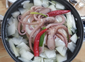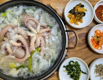 낙지 자체가 워낙에 크고 살이 탱탱하기 때문에 살짝 데쳐 먹을 때도 당연히 그 식감이 인상적이고 박속 덕분에 오래 끓여도 맛있다고 합니다.