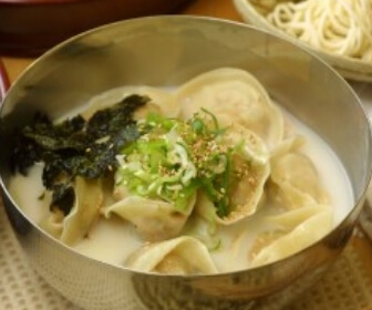 맛있는 만두에 사골육수와 황태국물을 적절히 섞어 묵직하면서도 깔끔한 만둣국물이 조화된 만둣국