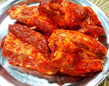 1대부터 고추장, 고춧가루, 매실을 기본으로 마늘과 생강을 빻아 소주를 더해 만들어지는 비법양념을 3일간 숙성해 고기에 살짝 묻혀 참숯 위 불판에서 구워진다고 합니다