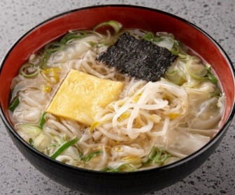 국내산 고기와 야채로 만든 속 재료를 넣고 빚어 48시간 끓여 낸 특제 간장과 남해안 참멸치, 완도 다시마 등으로 우려낸 시원한 육수와 조화를 이루는 부산을 대표하는 완당집
