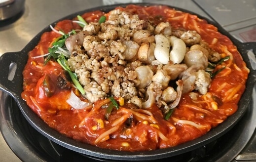 야들야들한 아귀찜과 쫄깃한 대창의 만남이라니 도저히 맛이 없을 수 없는 조합으로 곤이를 바삭하게 한 번 구워서 아귀찜에 올려 주는 곤이 구이도 별미